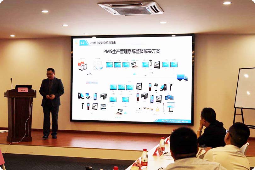 3、接下来杨老师与企业家详细介绍了PMS生产管理系统基于数字化转型的价值、功能以及与传统工业管理软件的功能对比。杨老师在介绍