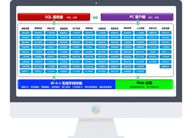 MS经营管理系统囊括20个功能模块,并支持PC端、手持终端(工位机、工业手持终端、手机)和Web端(供应链管理平台)多平台应用。