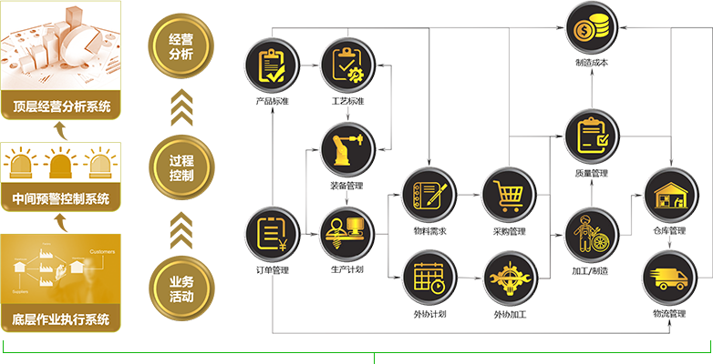 MS生产管理系统关注智能制造需求,基于生产与协同,将“大生产系统”有效融合,使之真正服务于制造业: