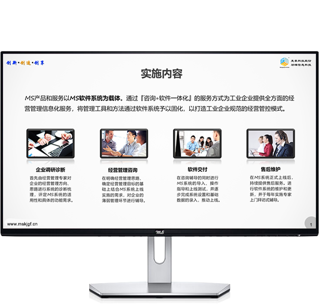 MS企业经营管理系统以MS软件产品为载体,首先由经营管理专家对企业的经营管理方向、思路,以及运营状况进行调研、诊断和梳理,在明确经营管理思路、确定经营管理目标的基础上对企业的管理方法进行辅导、指导,并用MS系统软件 让企业的经营管理思路、管理方法、作业步骤、过程控制点,以及对应的管理工具进行固化,最终实现企业的规范经营。